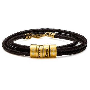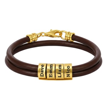 Bracciale da Uomo con Perline Personalizzate in Placcato Oro - Marrone