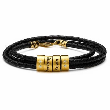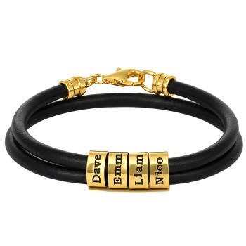 Bracciale da Uomo con Perline Personalizzate in Placcato Oro - Nero