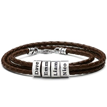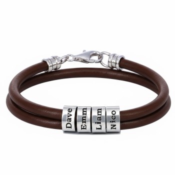 Bracciale da Uomo con perline personalizzate in argento - Marrone