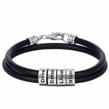 Bracciale da Uomo con perline personalizzate in argento - Nero